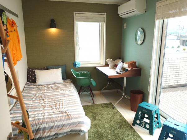 A room of 5–6 tatami mats is a typical size for a kids’ room and provides enough space to comfortably fit a bed, desk, and storage. To create a productive study environment, consider placing the desk near a window to take advantage of natural light to enhance their concentration when doing homework or studying.