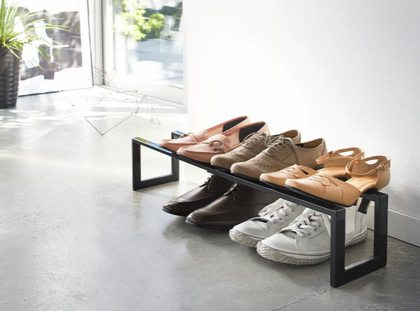 If you have additional shoes that won’t fit into the provided shoebox, we recommend using an expandable shoe rack. For example, the shoe rack pictured above can store up to 6 pairs of men’s shoes or 8 pairs of women’s shoes, including heels. It’s a space-saving solution that occupies minimal space.