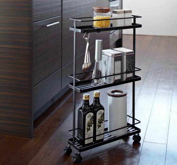 One versatile option is a kitchen cart equipped with casters and multiple shelves. While traditionally utilized for storing kitchen utensils such as toasters and rice cookers, a kitchen cart provides flexible storage solutions. It’s ideal for organizing items such as stationery and cosmetics, making it a practical addition to any room.