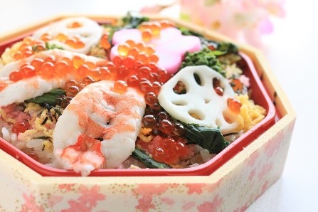 Often served on the 3rd of March for Hinamatsuri, the Dolls Festival, Chirashizushi is one of the most popular spring dishes in Japan. For the Dolls Festival, many families choose to decorate Hina Dolls and enjoy Chirashizushi alongside traditional treats such as strawberry daifuku.