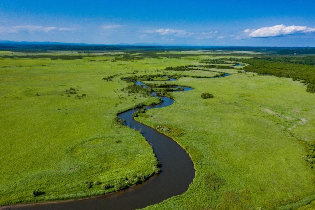The river meanders its way through the towns of Kushiro, the Kushiro Marsh, Shibecha, Teshikaga, and Tsurui and is characterized by crystal-clear rivers and forested wetlands.