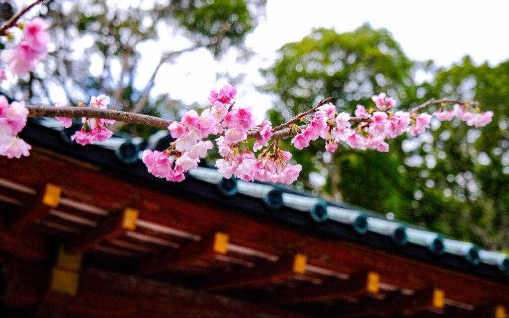 Mishima Taisha is a historical shrine surrounded by lush greenery and cherry trees. You can admire the soft pink Sakura in full bloom by taking a stroll through the shrine grounds. The contrast of the pink petals against the shrine’s traditional architecture creates a scene of timeless beauty.