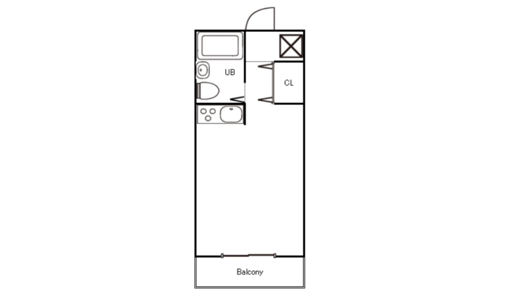 Corridor Type (A) rooms have a layout with facilities such as a unit bath (UB), or a closet (CL) on both sides of the entrance. It is a very common type of layout for studio apartments and 1K apartments. The distinctive feature is a corridor created between the facilities placed on both sides.