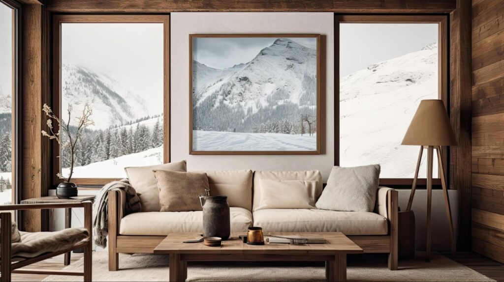 他にも、木材はDIYするのに扱いやすく使いやすい素材です。例えば、木箱などはそのままでも使えますし、少し手を加えてシンプルなコーヒーテーブルや棚ユニットを作ってみてもいいですね。ビンテージの木製窓シャッターなどを再利用してみるのもいいと思いますよ。木材は、センターピースやウォールアートにも加工できます。アルペン風インテリアの仕上げとして、部屋に年代物のスキー用具や額に入った山の写真などを壁に飾れば、もう完璧ですね。