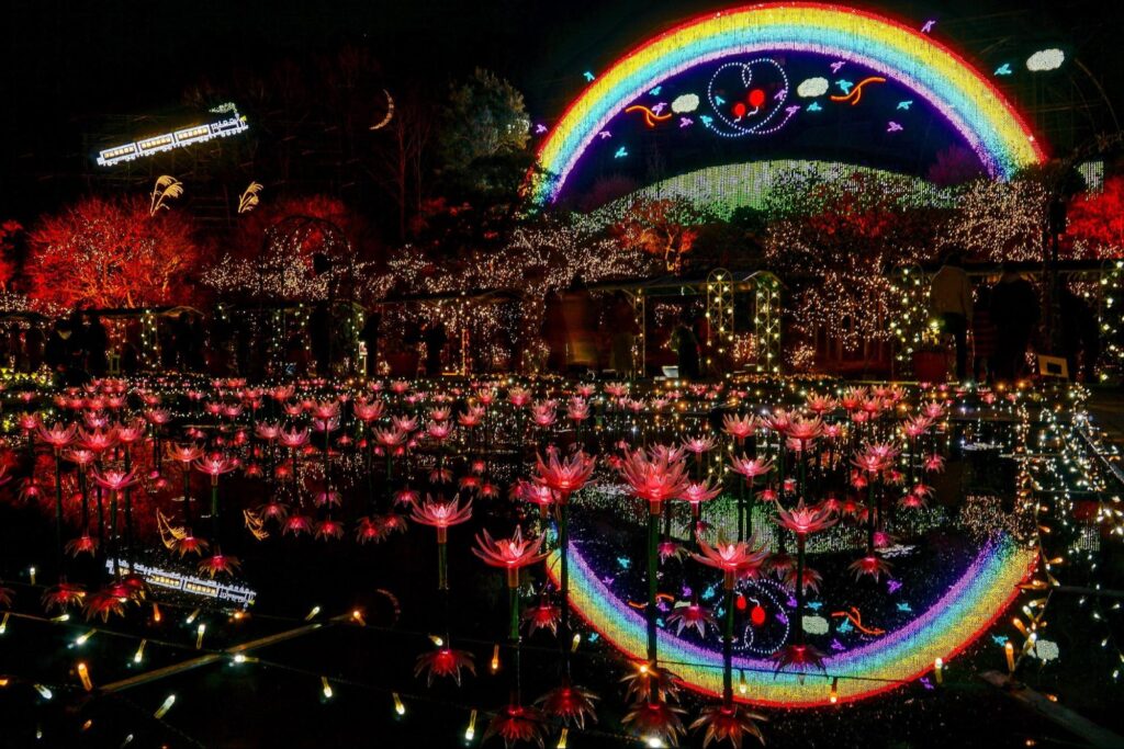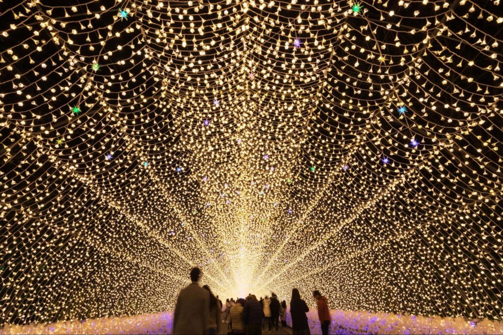 ナガシマスパーランド内にあるなばなの里(三重県桑名市長島)のライトアップは、関西最大規模を誇ります。何百万球のLED電球が会場内に張り巡らされ、なんとも綺麗で見ごたえがありますよ。また、名古屋へのアクセスも良好です。
