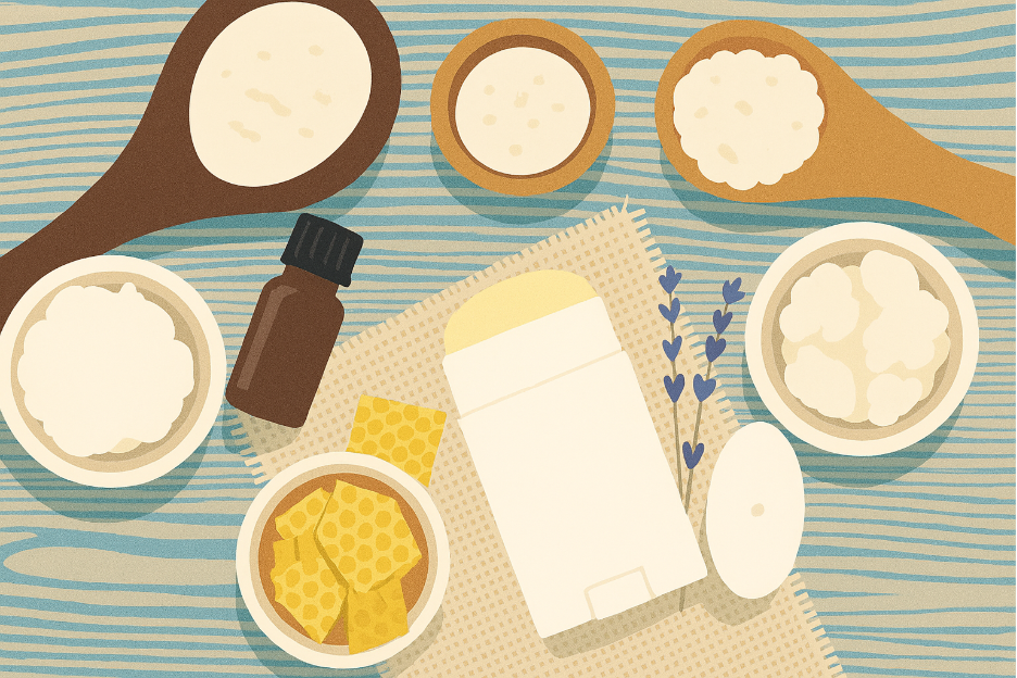 Para criar seu próprio desodorante natural, basta misturar o bicarbonato de sódio e o amido de milho e adicionar óleo de coco derretido. Misture tudo até obter uma pasta. Para uma fragrância adicional, adicione algumas gotas do seu óleo essencial preferido e mexa a mistura. Limpe e seque as axilas antes de adicionar uma pequena quantidade da mistura usando as extremidades dos dedos ou uma espátula. Mais informações podem ser encontradas aqui.