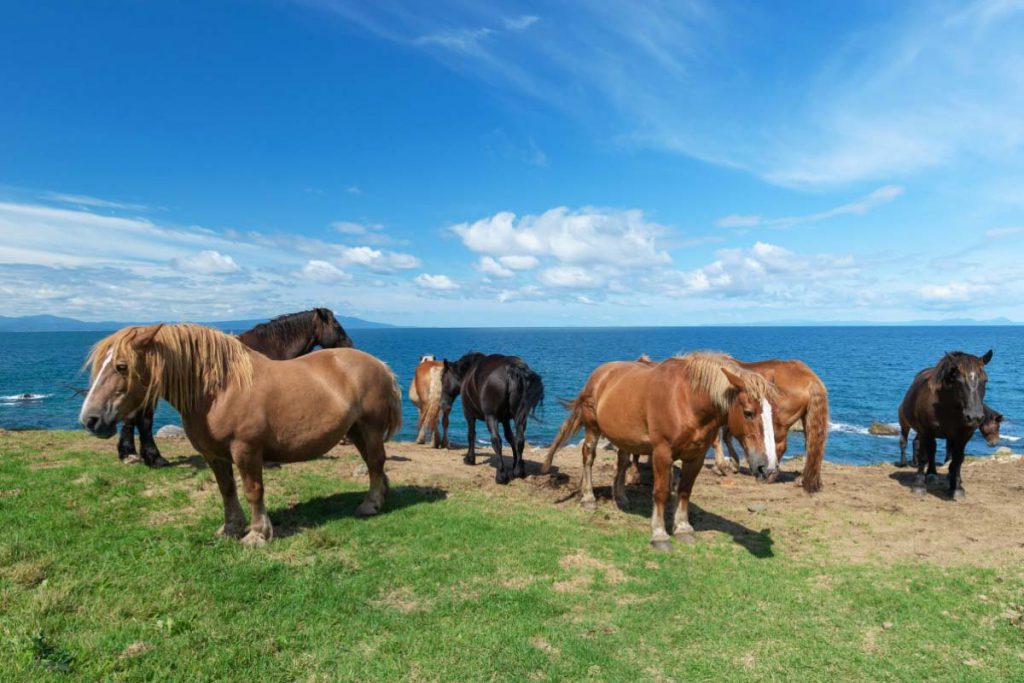Os cavalos Kandachime em Aomori são uma adorável raça que não pode ser encontrada em nenhum outro lugar. Eles são conhecidos por suas pernas curtas e torsos gordinhos. Os Kandachime conseguem sobreviver aos invernos intensos em Aomori. Eles vivem no cabo Shiriyazaki (uma parte do Parque Semi Nacional de Shimokita Hanto), onde há muitos campos para eles pastarem. Durante o inverno o cabo Shiriyazaki se torna inacessível devido as grandes nevascas e os cavalos vão para um campo de pastagem conhecido como Ataka. O cabo Shiriyazaki abre novamente na primavera, que é a estação perfeita para visitar o Parque Semi Nacional de Shimokita Hanto e vislumbrar os cavalos fofinhos.