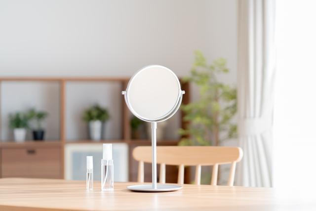 Um espelho de mesa é conveniente para aplicar maquiagem e verificar seu rosto. Mas um espelho de corpo inteiro é melhor para coordenar as roupas e verificar todo o corpo antes de sair.
