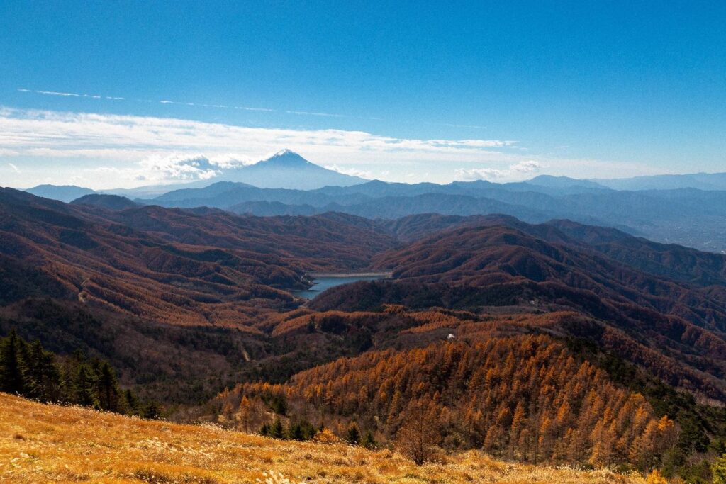 Além de sua natureza de tirar o fôlego, os caminhantes também desfrutam de vistas majestosas do Monte Fuji e as montanhas ao redor no cume.