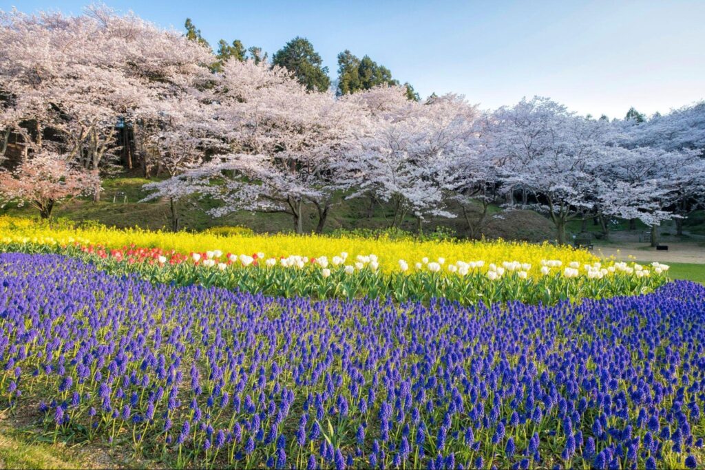 Aqueles que querem desfrutar das sakura ao lado de outras flores coloridas da primavera não podem perder uma visita ao Parque das Flores de Hamamatsu! Localizado na cidade de Hamamatsu, este amplo parque oferece vários jardins temáticos para os visitantes explorarem antes de seguirem para os bosques de flores de cerejeiras. Entre eles estão um jardim tradicional japonês e um campo de flores colorido.