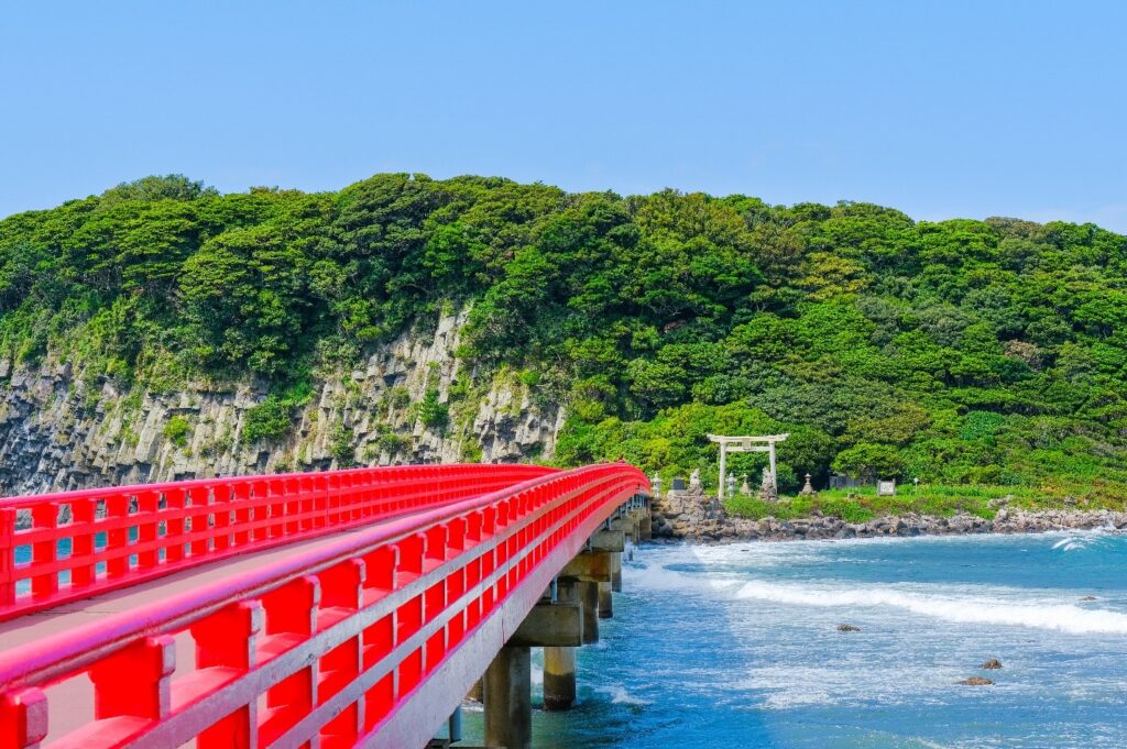 A Ilha Oshima é uma pequena ilha ao largo da costa das Falésias de Tojinbo em Sakai (mais sobre elas mais tarde!), sendo facilmente acessada por uma linda ponte vermelha brilhante que tem uma semelhança intrigante com a ponte da casa de banhos em A Viagem de Chihiro.
