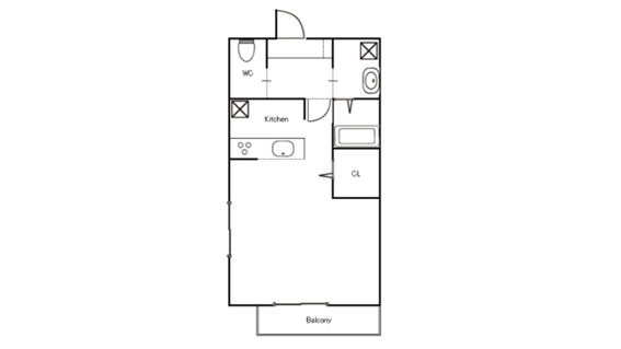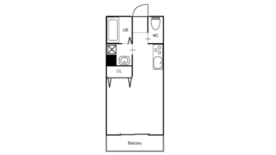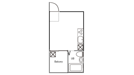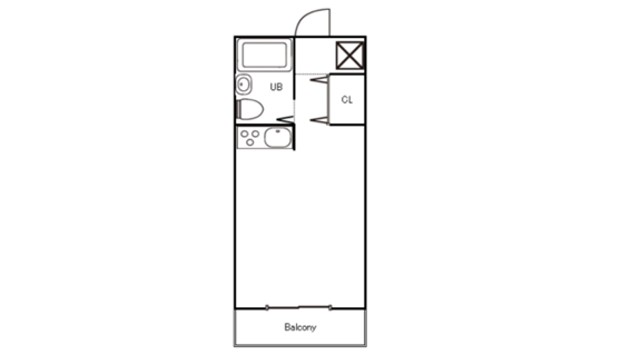 As quitinetes do tipo corredor (A) possuem uma planta com instalações como unidade de banheiro (UB) ou armário (CL) em ambos os lados da entrada. É um tipo de planta muito comum para quitinetes e apartamentos 1K. A característica difernte é um corredor criado entre as instalações colocadas em ambos os lados da entrada.