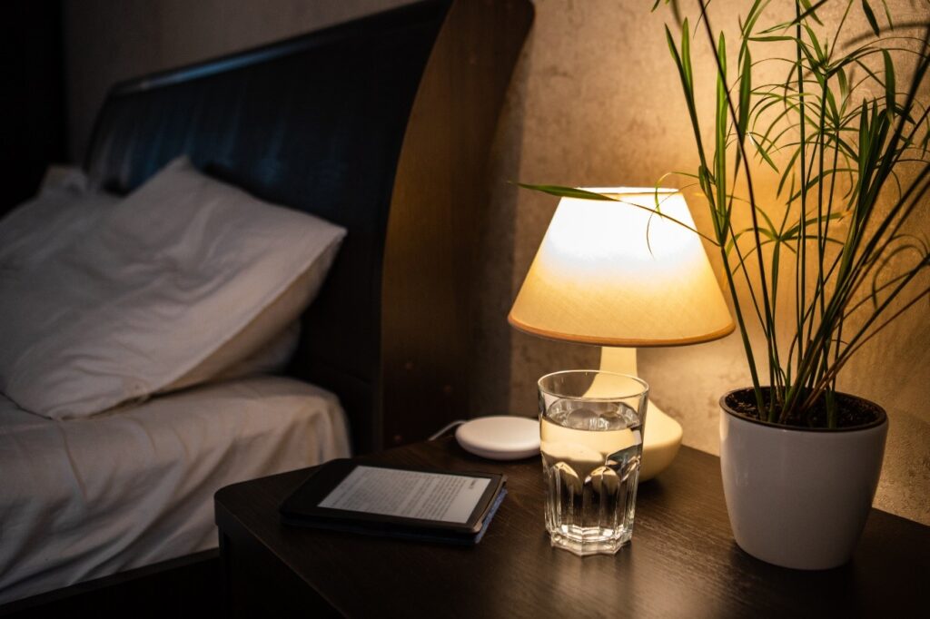 Để đọc sách hoặc thư giãn, bạn nên bổ sung đèn sàn hoặc đèn bàn làm nguồn sáng phụ. Đèn sàn có chiều cao lớn, giúp tạo chiều sâu và điểm nhấn cho không gian. Trong khi đó, đặt đèn bàn bên cạnh giường sẽ mang lại ánh sáng dịu nhẹ, tạo cảm giác ấm áp và dễ chịu, đồng thời rất tiện lợi khi sử dụng vào ban đêm.