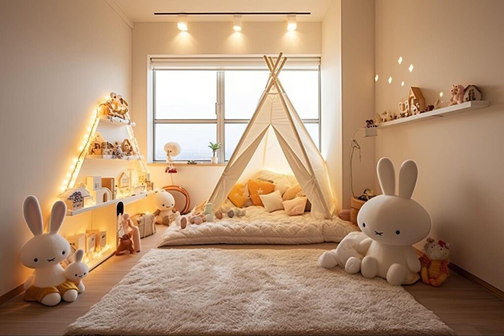 Bạn cũng có thể cân nhắc đồ nội thất có thể gấp lại và cất đi khi không sử dụng. Sử dụng những tấm thảm vui nhộn hoặc chiếu tatami để phân biệt chỗ chơi và thêm nét truyền thống Nhật Bản.
